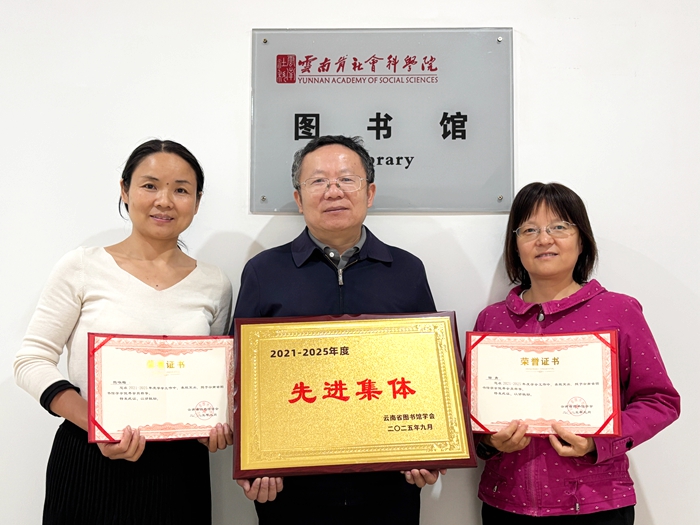 近日,云南省图书馆学会第八次会员代表大会暨工作交流会在昆明召开,会议对有突出贡献的会员单位和会员颁发奖牌证书,我院图书馆荣获“2021-2025年度先进集体”称号,顾胜华、田青、熊咏梅分别获得“2021-2025年度优秀会员”表彰。