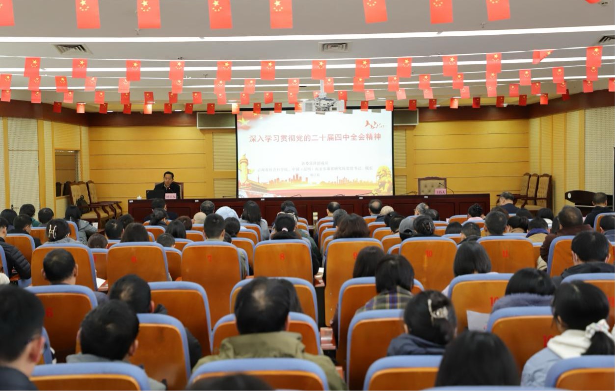 11月19日上午,学习贯彻党的二十届四中全会精神省委宣讲团报告会在我院举行。省委宣讲团成员,云南省社会科学院党组书记、院长杨正权为全院干部职工作宣讲报告。院党组成员、副院长陈光俊主持,院党组成员、副院长陈利君,原院党组成员、副院长黄小军出席报告会。