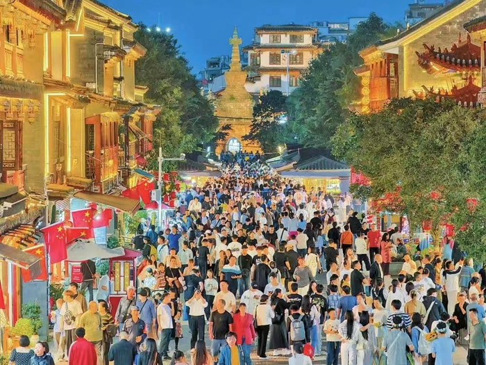 假日里,昆明市官渡古镇游人如织。王毅、胡妤雅/摄