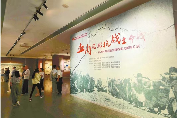 血肉筑就抗战生命线——抗战时期滇缅公路档案文献图片展展览现场。 本报记者 高吴双 摄
